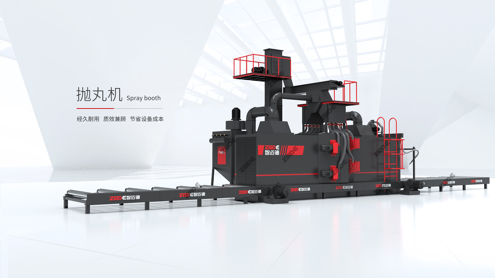 ① 無地基拋丸,節(jié)約地基成本約10萬元;進門出口各有一個除塵箱,除塵系統(tǒng)風(fēng)量達到1800m3/h,減少環(huán)境污染,減少環(huán)保設(shè)備投入;